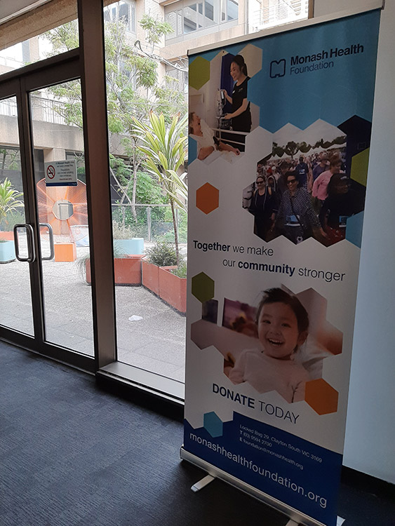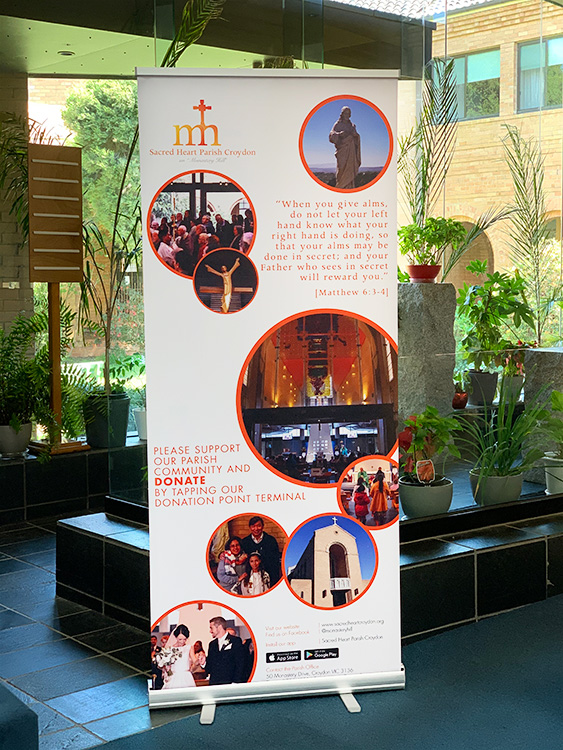 Digitally printed on polypropylene banner paper and supplied assembled with standard silver pull-up stand.